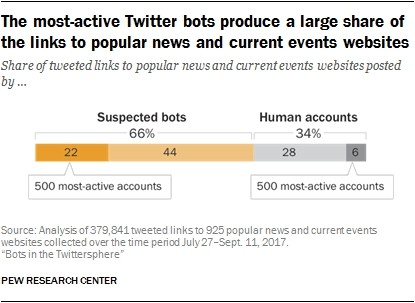 - Il 66 per cento dei link twittati ai siti più importanti vengono condivisi da bot automatici